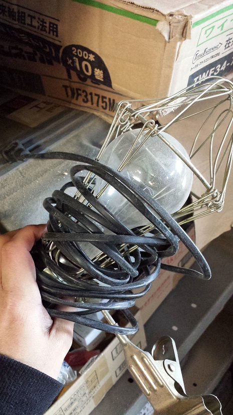建設会社で働いてる特権で借りてきた。ちなみに電工ドラムっていうのは工事現場で使う「コンセント付きの、長い延長ケーブルが巻いてあるヤツ」ってイメージでいいと思う。今回出番は無かったけど。巻いたまま使用すると発火するから、スタジオが火事になるね!