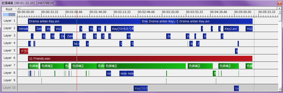 で、その無圧縮で書き出したものをシナリオに沿って合成して行き、最後も無圧縮で書き出します。5分の動画だけど25GBくらいあったかな?