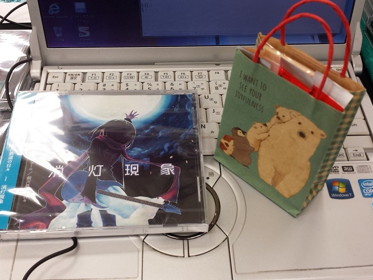 ちなみに頂いた差し入れは画像の右部。左のCDは「消灯現象」さんのCD。いつもお世話になってる女性Vo.ロックのサークルさんです。(偏見ですが、ずばりアニソンで例えると、岸田教団を爽やか且つポップにして曲調のレンジを広げたバンドサウンド、、、みたいな。)