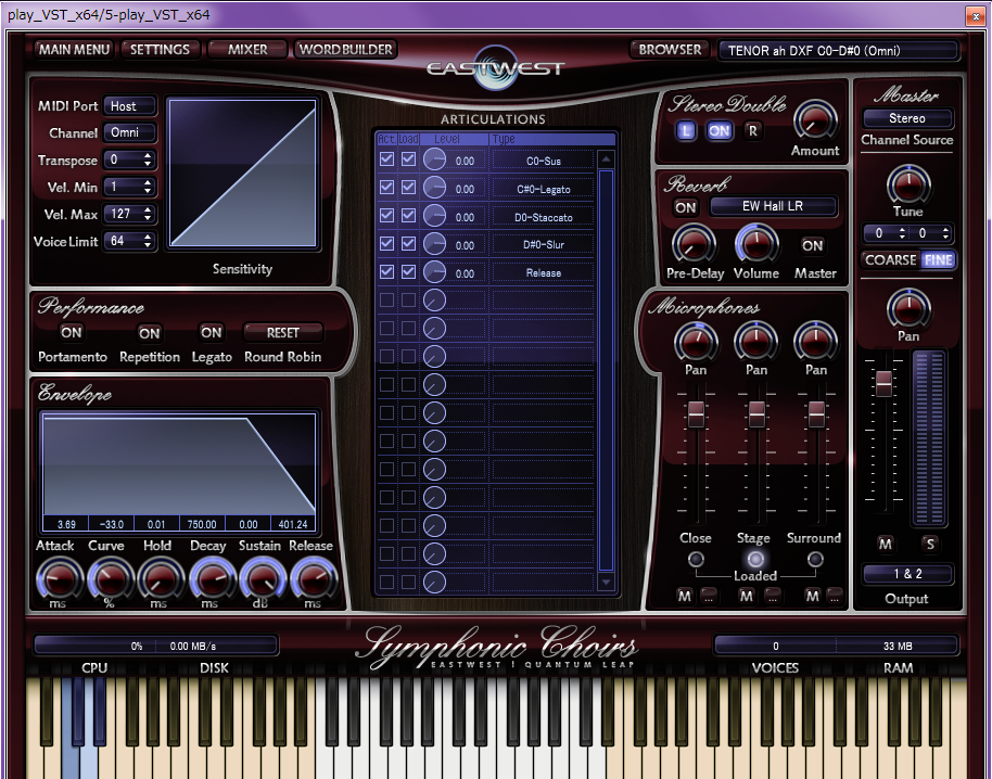 ・PLAY(スタンドアローン&VSTとしても作動?これをDAWで起動後、Choir音源を選択する。EAST WESTの他の音源もこれで動かす)